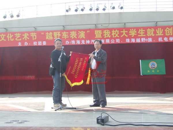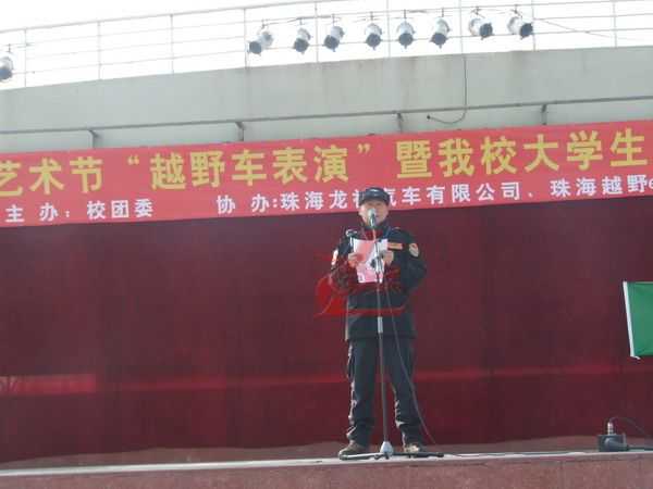 12月5日龍神公司與廣東科學(xué)技術(shù)職業(yè)學(xué)院聯(lián)合“越野e族”舉辦“第十七屆大學(xué)生文化藝術(shù)節(jié) 越野車文化交流表演暨大學(xué)生就業(yè)創(chuàng)業(yè)基地建設(shè)啟動(dòng)儀式在廣科院校園隆重召開(kāi)。此次大學(xué)生文化藝術(shù)節(jié)由廣科院校團(tuán)委主辦,龍神公司、越野e族協(xié)辦,出席此次活動(dòng)的分別來(lái)自珠海,江門(mén),中山,順德,澳門(mén)的越野e族朋友共八十多輛高級(jí)越野車參與;在緊張刺激的汽車轟鳴聲中拉開(kāi)了序幕。
