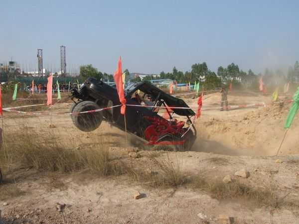最激動(dòng)人心的越野車表演在下午正式開(kāi)始,所有車輛滿載著喜悅開(kāi)向越野場(chǎng)所---廣科院后山,遠(yuǎn)遠(yuǎn)望去高底不平的小大山丘,讓人生畏。比賽開(kāi)始時(shí)每個(gè)車主都直沖向目的地在山丘中起浮不斷,時(shí)而下沉?xí)r而沖上山丘,緊張、刺激、驚險(xiǎn)、轟鳴聲、尖叫聲。最后五名車主分別獲得了最佳勇敢獎(jiǎng);最佳震撼獎(jiǎng);最佳車手風(fēng)采獎(jiǎng);最佳改裝創(chuàng)意獎(jiǎng);最佳內(nèi)飾獎(jiǎng)。