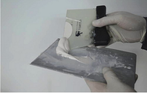 按比例添加固化劑后按照以下步驟進行調(diào)和原子灰: