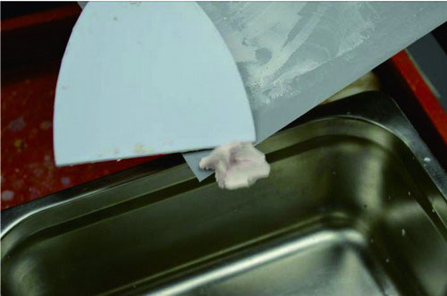 (8)將所有攪拌好的原子灰全部舀起,以方便刮涂。
