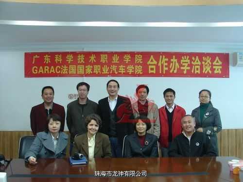 2010年1月法國國家職業(yè)汽車學院國際項目合作負責人張丹宇老師與外交部阿若略女士在我司領導的陪同下到廣東科學技術職業(yè)學院洽談合作辦學,受到學院領導及老師的熱情接待和歡迎。會上廣科院周院長介紹了與龍神公司已愉快地合作三年,培養(yǎng)出的學生得到社會用人單位的認可,充分肯定了與龍神合作辦學模式,并感謝龍神在汽車鈑噴技術及設備上給予的幫助和支持。我司彭總曾經在法國留學,對法國教學體質有一定的了解,也希望為法國汽車學院與中國搭建長期合作的平臺,從而推動汽車后市場的發(fā)展;促進鈑噴技術的國際交流,使鈑噴行業(yè)國際化。通過此次友好洽談參觀考察,法國國家職業(yè)汽車學院國際項目合作負責人表示將會進一步了解中國汽車鈑噴技術,加強國際交流。