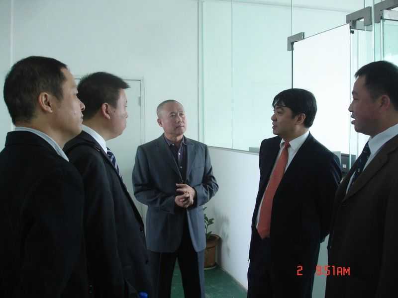 參觀生產(chǎn)部 (右一 龍神彭副總 右三 劉杰處長(zhǎng) 左三 龍神彭總 左一 龍神蘇副總)領(lǐng)導(dǎo)合影