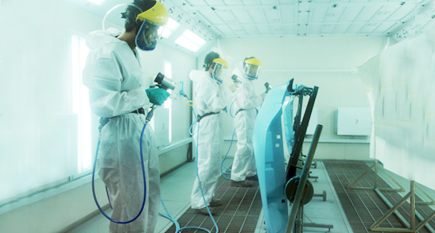 (5)噴涂面漆。將調(diào)好的面漆加入噴槍罐中,調(diào)整噴槍的氣壓、出漆量以及噴幅后,開始均勻地噴涂在鈑金件上。不同的面漆在噴涂時(shí)的工序也有所不同。