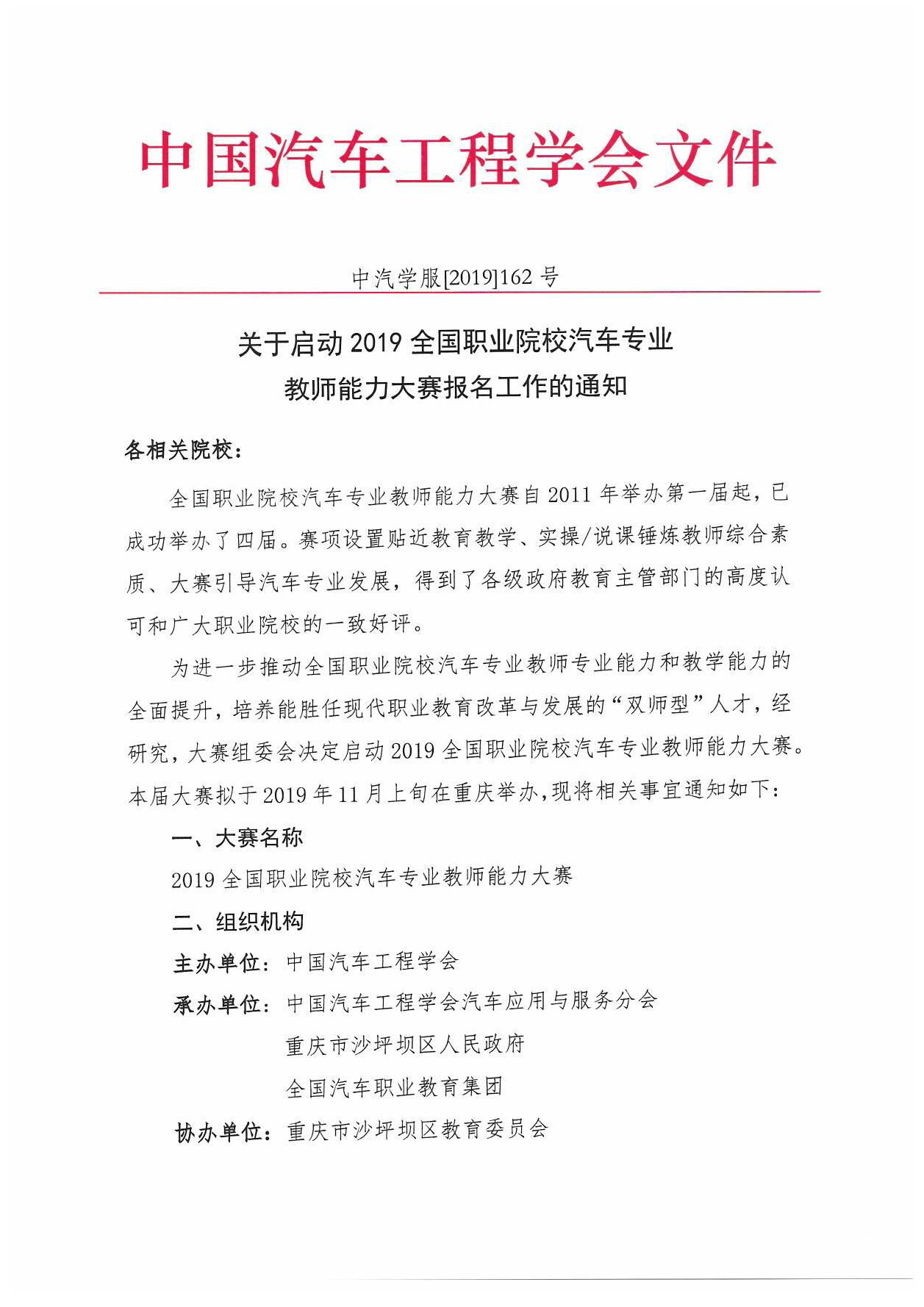 2019全國職業(yè)院校汽車專業(yè)教師能力大賽-鈑金賽項報名進行時 2019-09-12 7021 由中國汽車工程學(xué)會主辦,中國汽車工程學(xué)會汽車應(yīng)用與服務(wù)分會、重慶市沙坪壩區(qū)人民政府、全國汽車職業(yè)教育集團承辦,珠海市龍神有限公司協(xié)辦的“2019年全國職業(yè)院校汽車專業(yè)教師能力大賽--鈑金維修賽項”報名工作開始了。。。