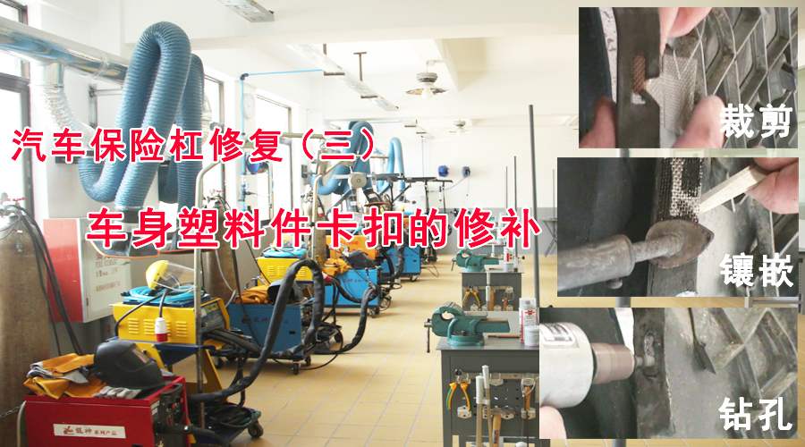 汽車保險杠修復(fù)(二)塑料件的穿孔修復(fù) 2014-11-28 20141 汽車車身穿孔修復(fù)的前期準(zhǔn)備非常重要,必須嚴(yán)格按照工藝流程,將修復(fù)孔表面和周邊打磨平整、清潔干凈,而成本低、修復(fù)速度快、貼敷粘連使用設(shè)備少的無繡加固網(wǎng)焊接修復(fù)技術(shù)是應(yīng)對穿孔修復(fù)的有效手段。塑料件的穿孔修復(fù)詳細(xì)步驟見下圖。(以下步驟中用到的工具:龍神電動氣動鉆、龍神打磨機(jī)、龍神修補(bǔ)網(wǎng)、修補(bǔ)膠條、電烙鐵)