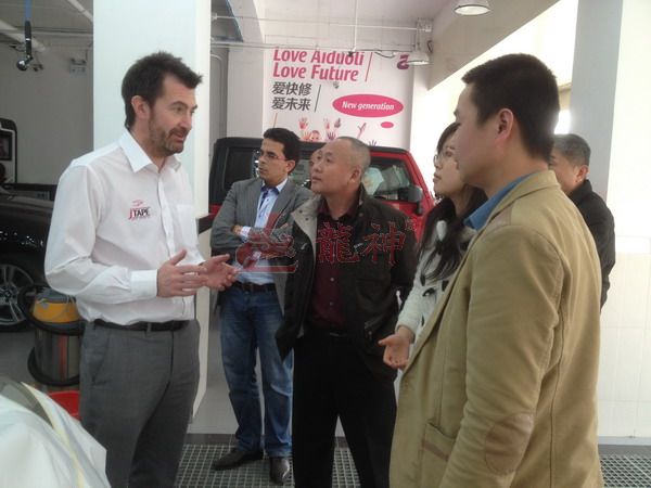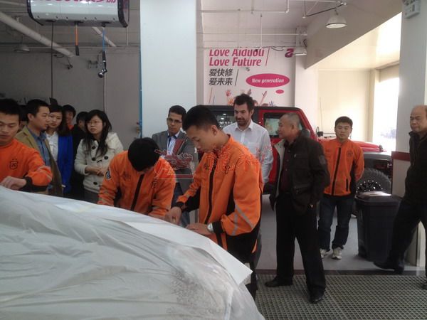 2013年特邀國外專家赴北京車爵士演示車縫泡膠條的使用 本司訊:2013年4月北京晴空萬里,龍神公司特邀英國專家一行五人,來到了北京車爵士進行汽車噴涂遮蔽技術(shù)交流。首先公司一行了解車爵士的汽車噴涂情況及詢問了使用的遮蔽工具情況。隨后英國專家針對在汽車噴漆時難噴涂的車門縫隙、玻璃死角等地方的專業(yè)遮蔽工具的演示。車縫泡沫膠:用于車身所有縫隙的遮蔽,有效隔離及遮蔽漆霧噴入車縫里。 2013-04-08 12019