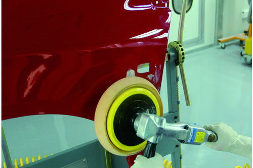 2. 再用打磨機(jī)打磨整個(gè)中涂底漆區(qū)域與舊漆膜。