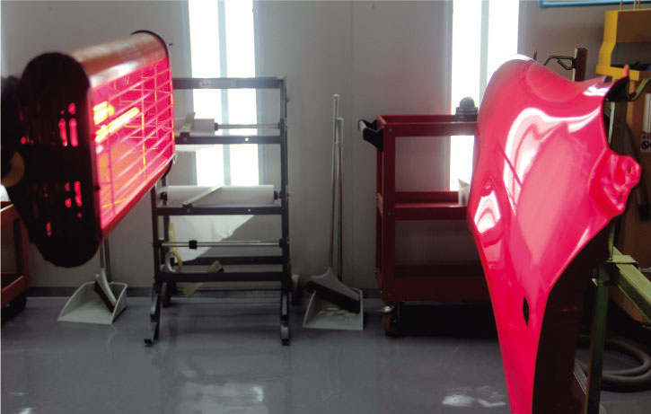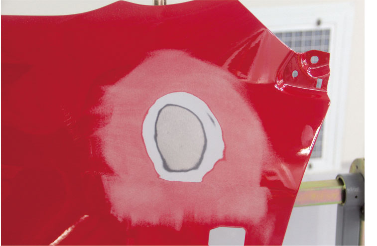 1. 首先用除油劑對(duì)需要修補(bǔ)的中涂層進(jìn)行整體除油,待干燥后用粘塵布整體除塵。