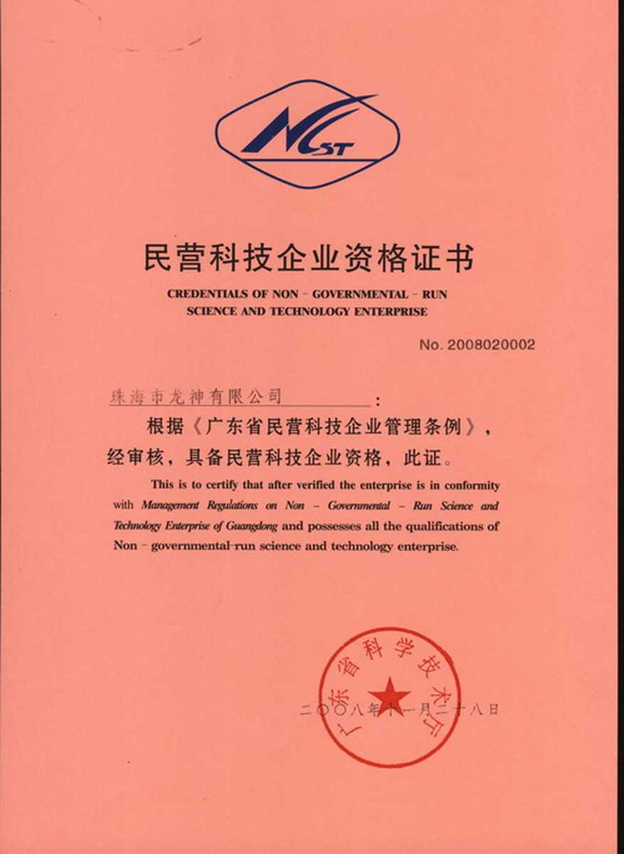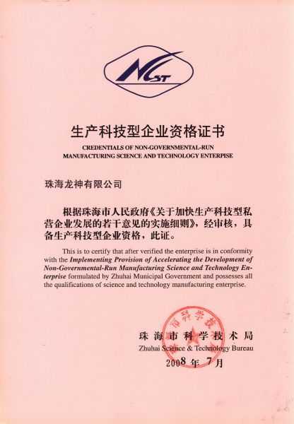 資格證書 一、ISO9001:2008質(zhì)量管理體系認(rèn)證ISO9001:2008質(zhì)量管理體系認(rèn)證證書 二、廣東省民營科技企業(yè)資格證書民營科技企業(yè)資格證書 廣東省民營科技企業(yè) 三、珠海市生產(chǎn)科技企業(yè)證書生產(chǎn)科技型企業(yè) 珠海市生產(chǎn)科技型企業(yè) 認(rèn)定證書 生產(chǎn)科技型企業(yè)資格證書(以上圖片均可點(diǎn)擊放大) 2012-11-27 36632