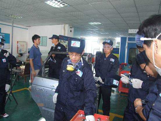 全國交職院校鈑噴師資高級培訓(xùn)班實(shí)況 炎炎的八月三伏天,為期7天的全國交職院校鈑噴師資高級培訓(xùn)也隨之火熱開班。此次高級班除了有以往鈑金加噴漆知識的組合課程外,還特意邀請來自上海交通職業(yè)技術(shù)學(xué)院,且有三十多年專業(yè)教學(xué)經(jīng)驗(yàn)的資深汽車技術(shù)和營銷培訓(xùn)師印鎮(zhèn)元教師,為主講事故車定損、舊機(jī)動(dòng)手車評估等更深入的知識傳授。直接與專業(yè)老師面對面心得交流,培訓(xùn)的氛圍再次火熱。