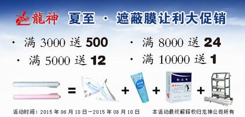 夏季讓利大回饋,遮避膜優(yōu)惠大促銷 2015-06-05 29888 買滿3000元,贈(zèng)送紙漏斗500個(gè); 買滿5000元,贈(zèng)送除漆洗手膏1箱; 買滿8000元,贈(zèng)送標(biāo)準(zhǔn)抹塵布1箱/24盒; 買滿10000元,贈(zèng)送小切紙架1臺(tái) 。