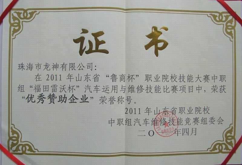 4月7日,在「2011年山東省“魯商杯”職業(yè)院校技能大賽」中職組“福田雷沃杯”汽車(chē)運(yùn)用與維修技能大賽項(xiàng)目中,我司榮獲“優(yōu)秀贊助企業(yè)”榮譽(yù)稱(chēng)號(hào)。