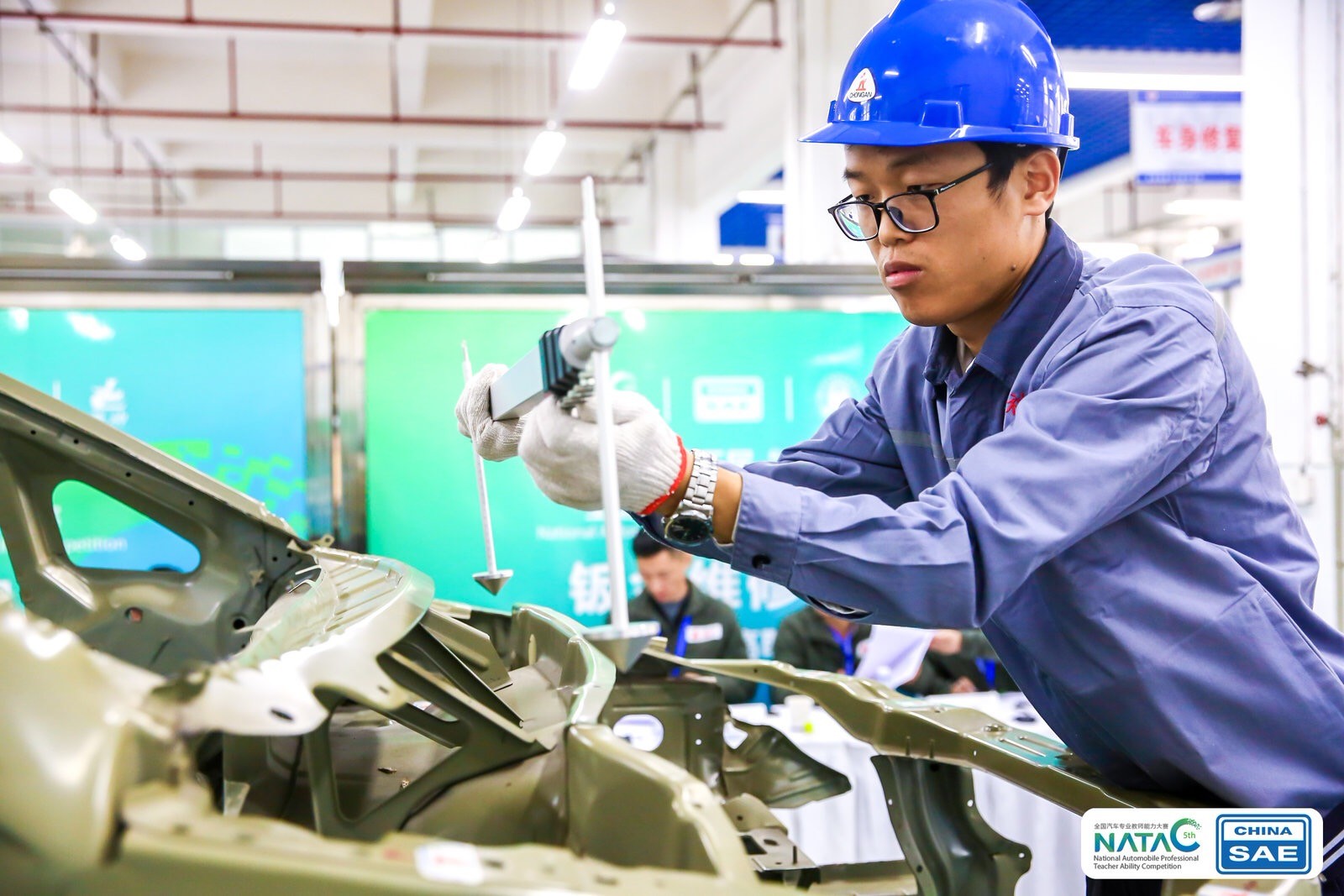 此次鈑金維修賽項分為N進36的選拔賽(微課制作)、36進4的預賽(項目是信息化教學說課、鋼制板件維修、模擬前縱梁更換維修)、決賽(項目是發(fā)動機艙損傷評估、信息化教學現場授課)。